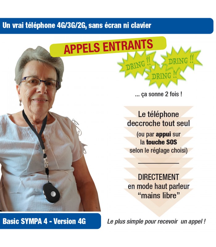 Un vrai portable pour SOS ou 3 raccourcis Appel entrant et sortant SOS appel et SMS avec position GPS ou appel de 3 contacts. Mode main libre automatique Filtrage appel entrant Alerte batterie...
