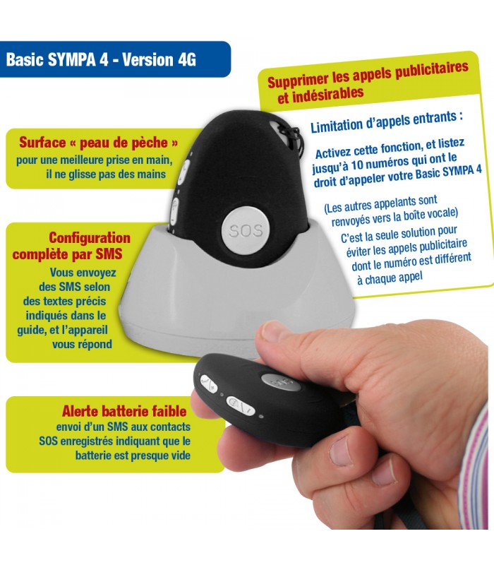 Un vrai portable pour SOS ou 3 raccourcis Appel entrant et sortant SOS appel et SMS avec position GPS ou appel de 3 contacts. Mode main libre automatique Filtrage appels entrants Alerte batterie...